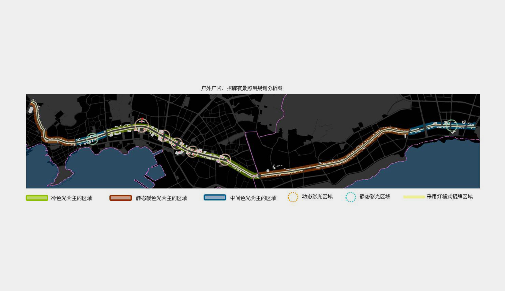 3、指導后續(xù)規(guī)劃實施。確定主干道分區(qū)分段的定位,制定戶外廣告設施控制細則,示范性提供重要節(jié)點詳細規(guī)劃設計,指導各行政區(qū)戶外廣告規(guī)劃、整治全面展開。