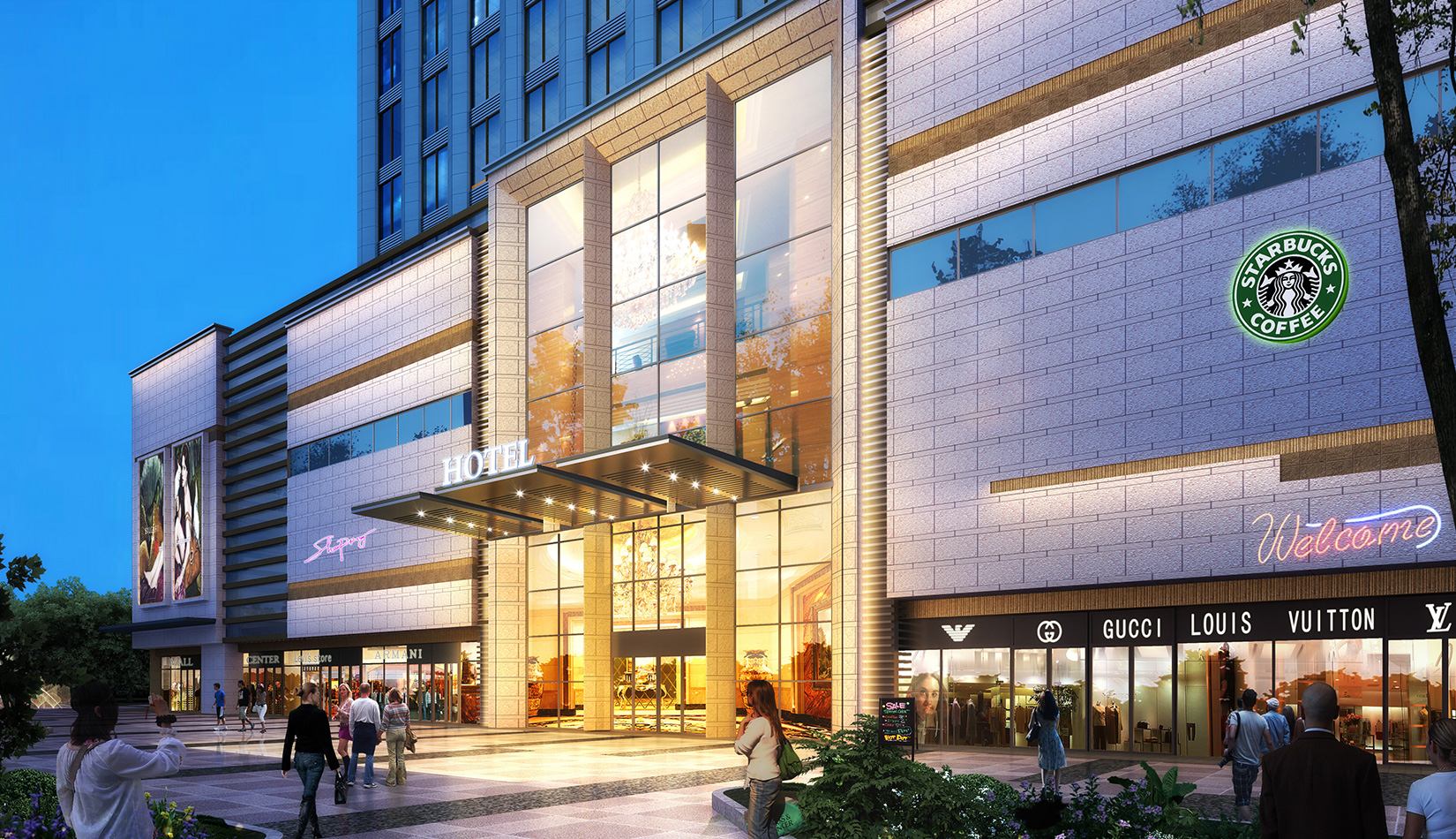 3.引入酒店等功能,可增加區(qū)域的人流量,從而帶動商業(yè)的發(fā)展。