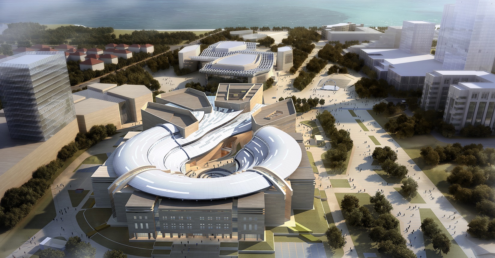 該項(xiàng)目由我院聯(lián)合中國(guó)建筑設(shè)計(jì)研究院崔愷院士團(tuán)隊(duì)共同打造。設(shè)計(jì)方案以“嶗山石花、海涌浪激”的意向?yàn)榛{(diào),形成“浪涌石開(kāi)、時(shí)空留痕”的文化景象。